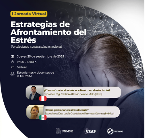 Te invitamos a participar en la I Jornada Virtual de Estrategias de Afrontamiento del Estrés, un espacio creado para fortalecer nuestra salud emocional y aprender herramientas prácticas frente a las exigencias académicas y profesionales.