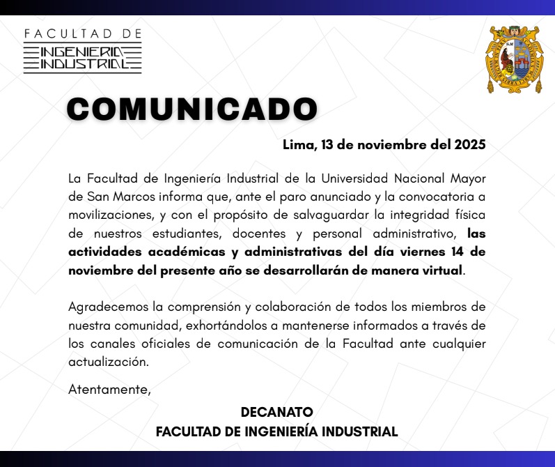 UNMSM #IngenieríaIndustrial #ComunicadoOficial #ClasesVirtuales