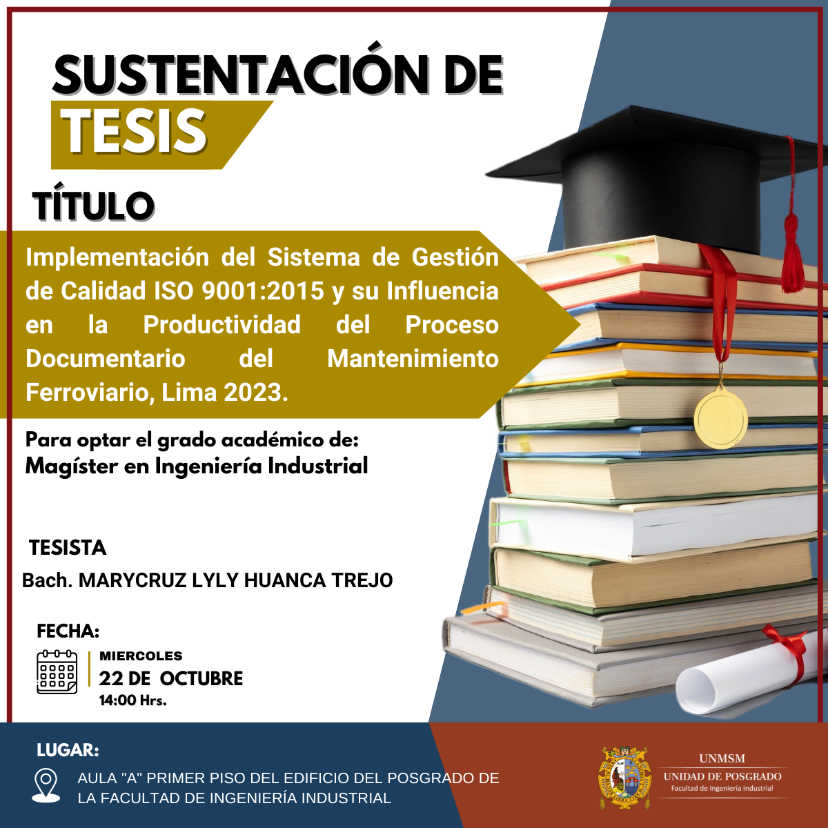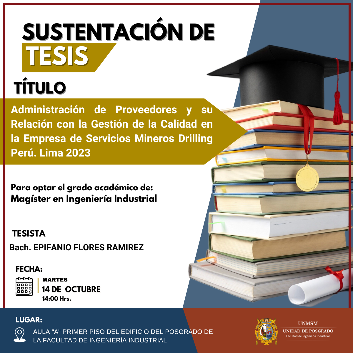 Estimados estudiantes, docentes y público en general: La Unidad de Posgrado de la Facultad de Ingeniería Industrial de la Universidad