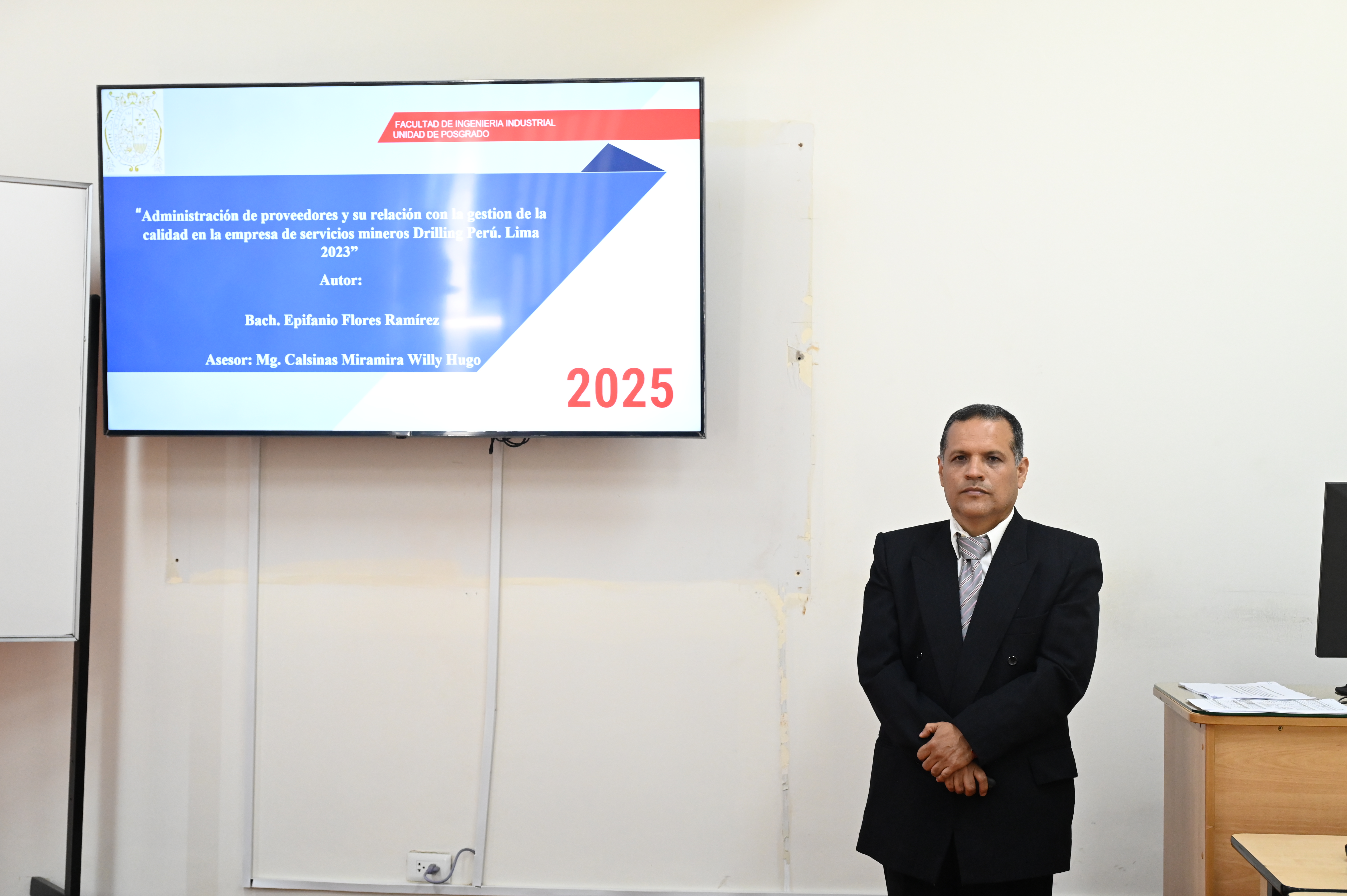 Con gran satisfacción informamos que el Bach. Epifanio Flores Ramírez defendió con éxito su tesis titulada “Administración de Proveedores y su Relación con la Gestión de la Calidad en la Empresa de Servicios Mineros Drilling Perú. Lima 2023”, obteniendo el grado académico de Magíster en Ingeniería Industrial.